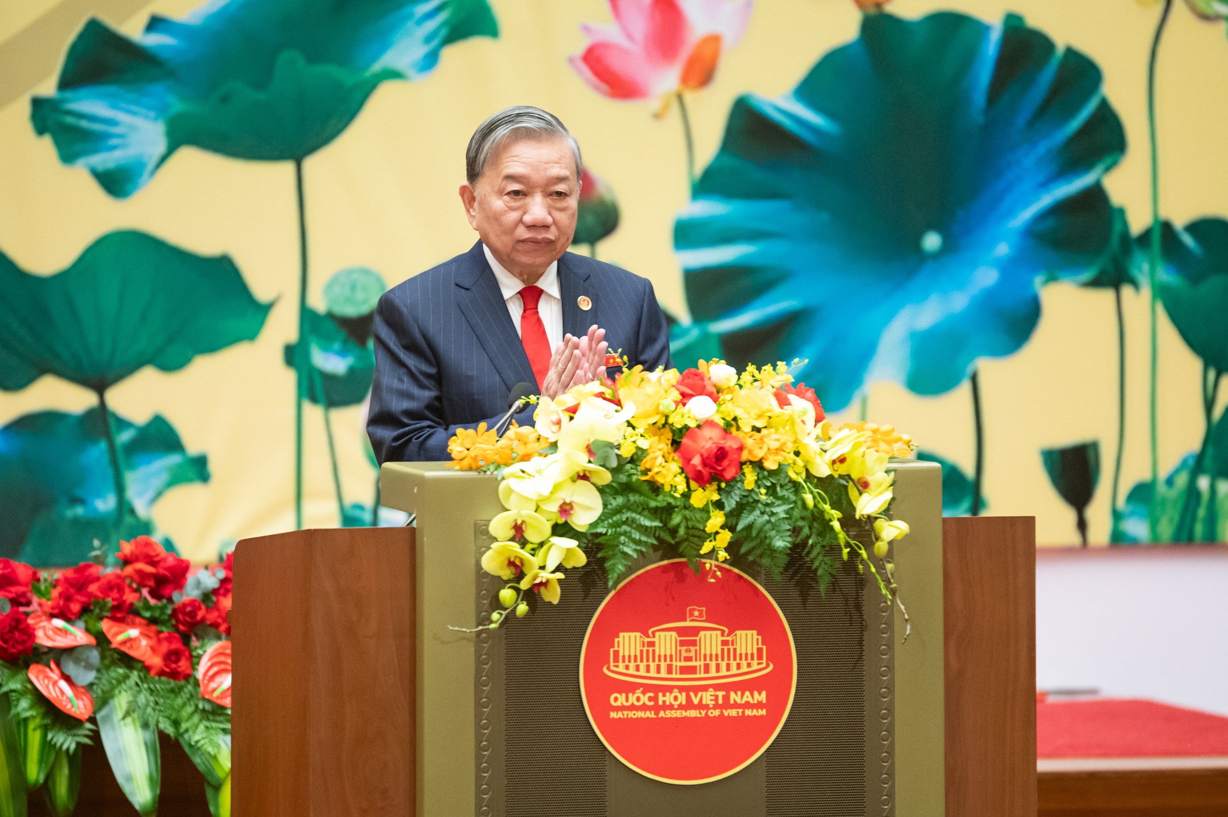 "Đó là khát vọng lớn, là ý chí thống nhất của toàn Đảng, toàn dân và toàn quân ta. Để thực hiện khát vọng đó, vai trò của Quốc hội trong kiến tạo thể chế phát triển có ý nghĩa đặc biệt quan trọng. Không có đột phá về thể chế pháp luật, không có một Quốc hội bản lĩnh, trí tuệ, hành động quyết liệt và trách nhiệm cao thì mục tiêu lớn lao ấy khó có thể trở thành hiện thực", Tổng Bí thư Tô Lâm nhấn mạnh.